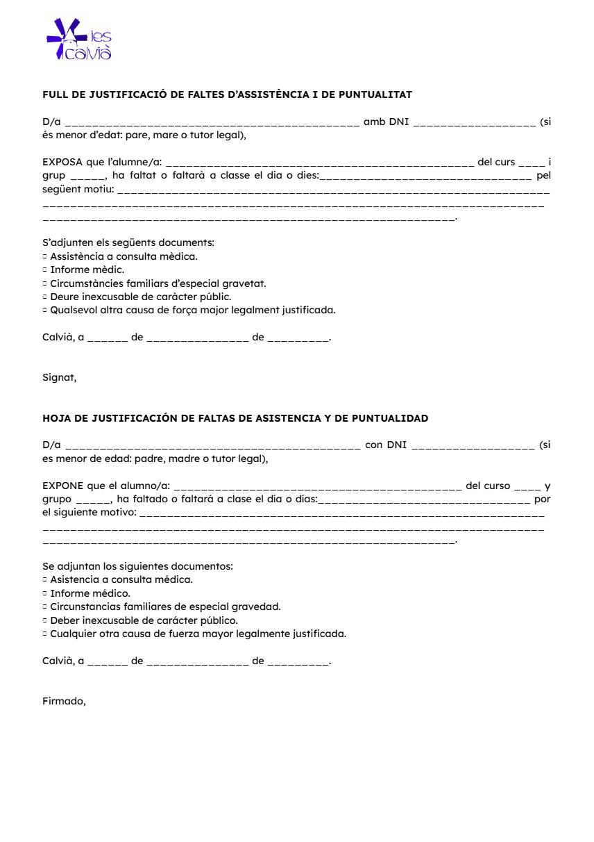 Normativa de justificació de faltes d’assistència i puntualitat