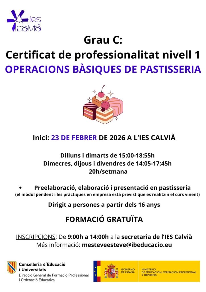 | 1er | Preelaboració, elaboració i presentació en pastisseria | 240 |